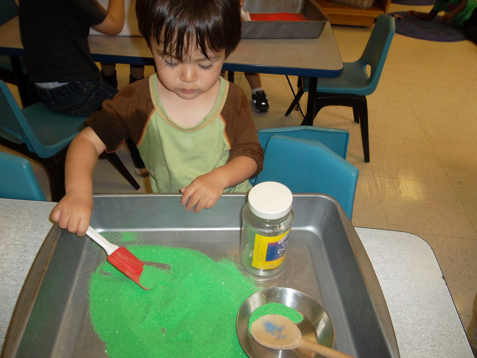 Everyday the children are experiencing new things and learning to use the materials provided for them in different ways. They are encouraged to use their imaginations so we are constantly amazed with the ways they decide to use each material. Also as time passes the teachers have observed that the children have become accustomed to the materials and are more patient when creating their art.